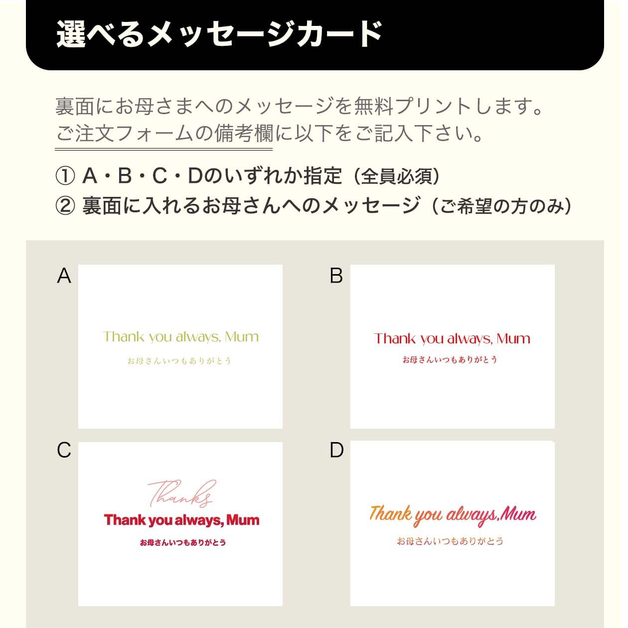 ▼母の日限定ラッピング & 選べるカード付き