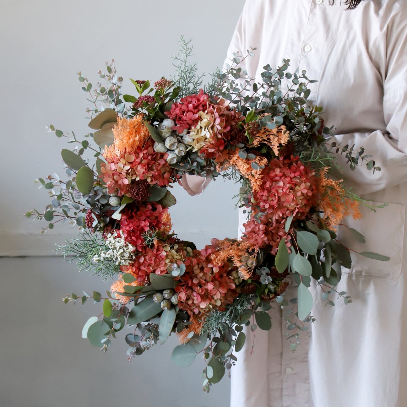季節の旬のお花を長持ちするよう処理して制作いたします。お花の内容はお任せとなります。お好きな色味・雰囲気など備考欄にてお知らせください。