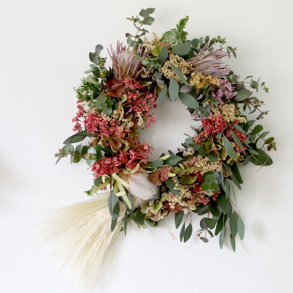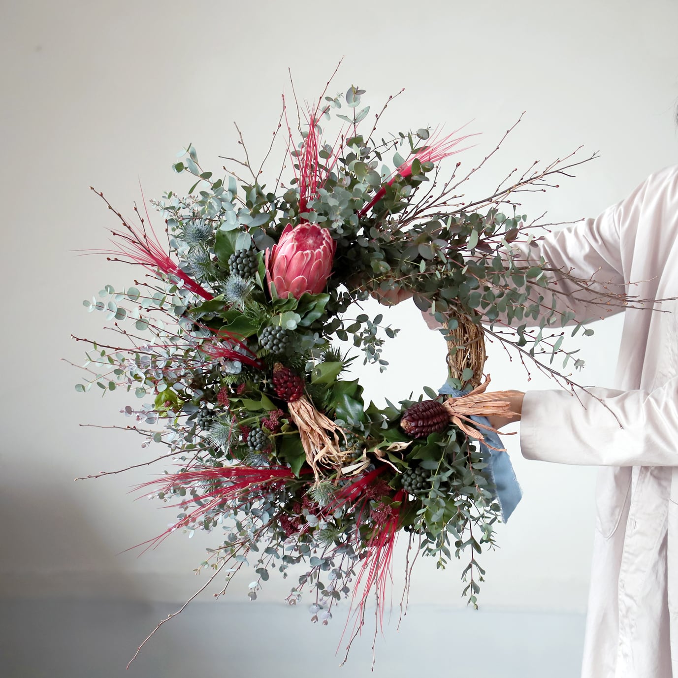 リースの丸い形には、終わりのない“つながり”と“繁栄”の意味が込められています。