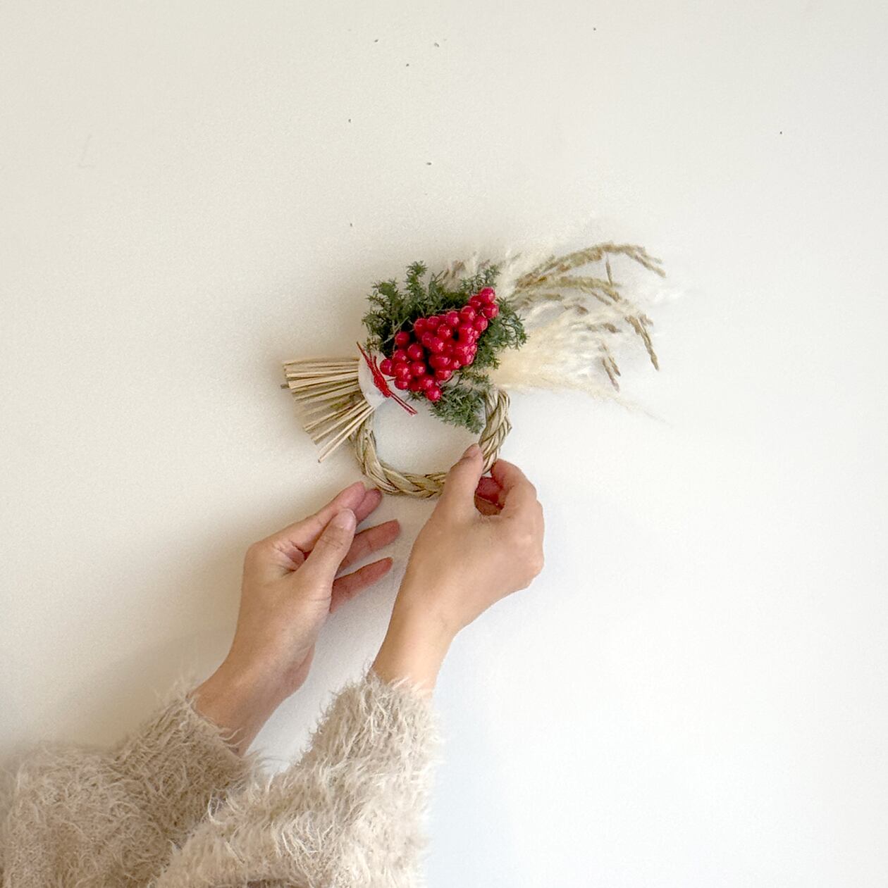 しめ縄、パンパスグラスなど、