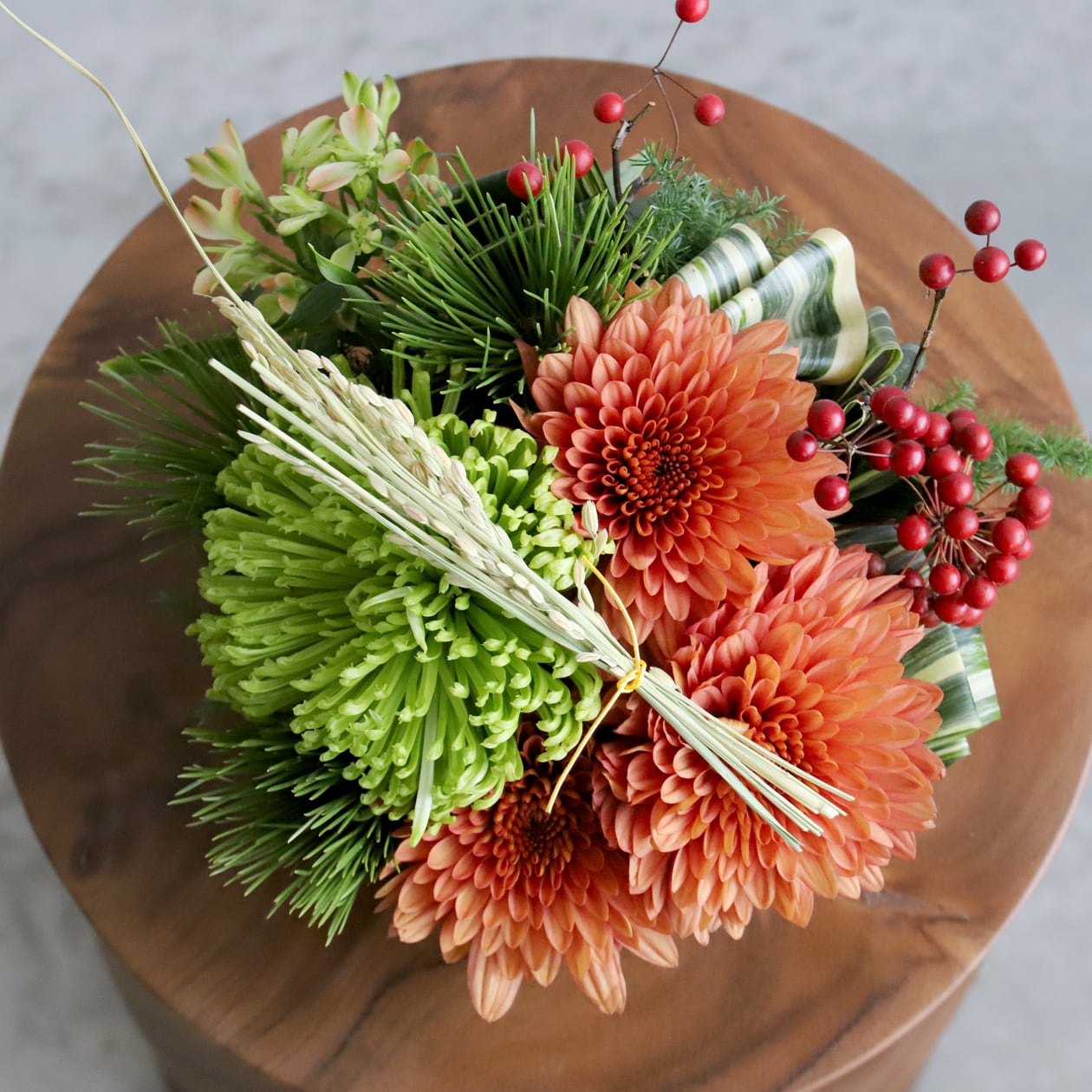 ・菊には個体差があり、写真よりも茶色がかったシックなトーンのものが届く場合がございます。