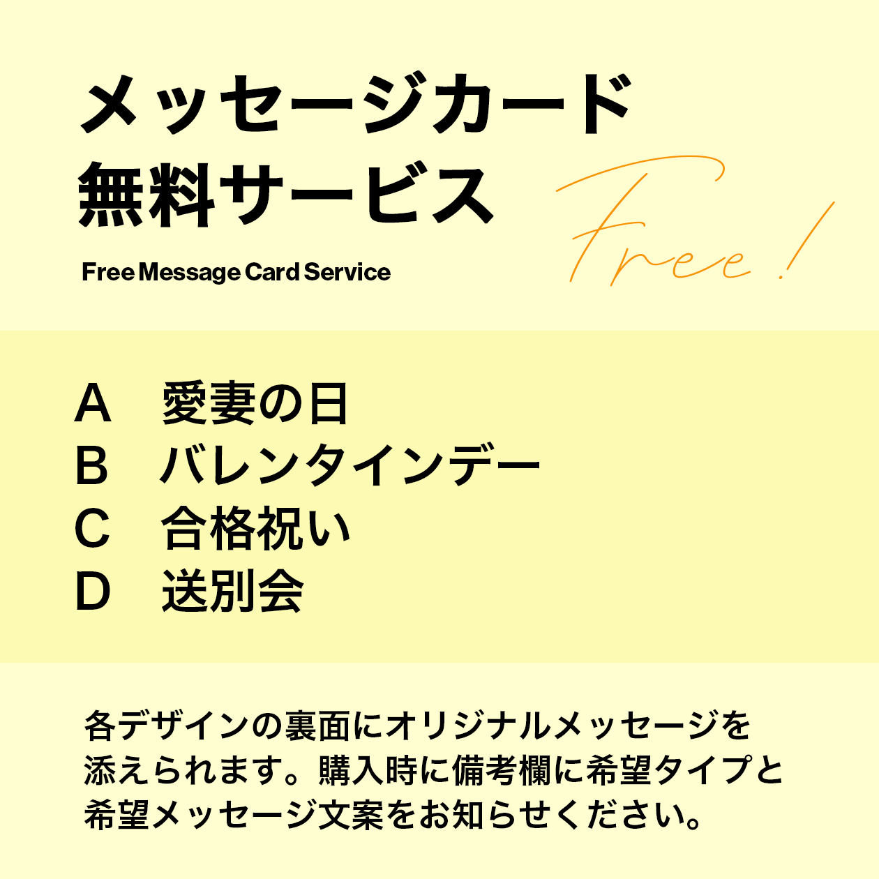 ご希望のメッセージカードを注文画面の「備考欄」にご記入ください。