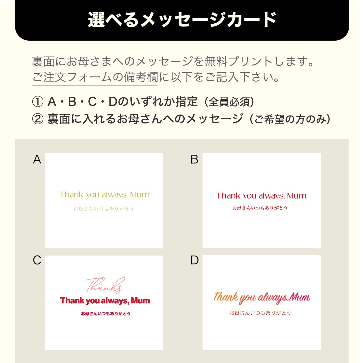 ※母の日期間は荷物量の急増につき、半日~1日の配達遅延の可能性がある旨、各配送業者様より通知を受けております。ご理解の程、よろしくお願いいたします。