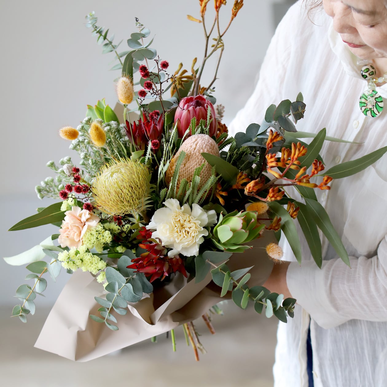 ワイルドフラワーの花束 Sサイズ(よこ約35~45cm、高さ約40~50cm) デザインやお花の種類はその日の入荷状況によりお任せ ※写真はイメージとなります。