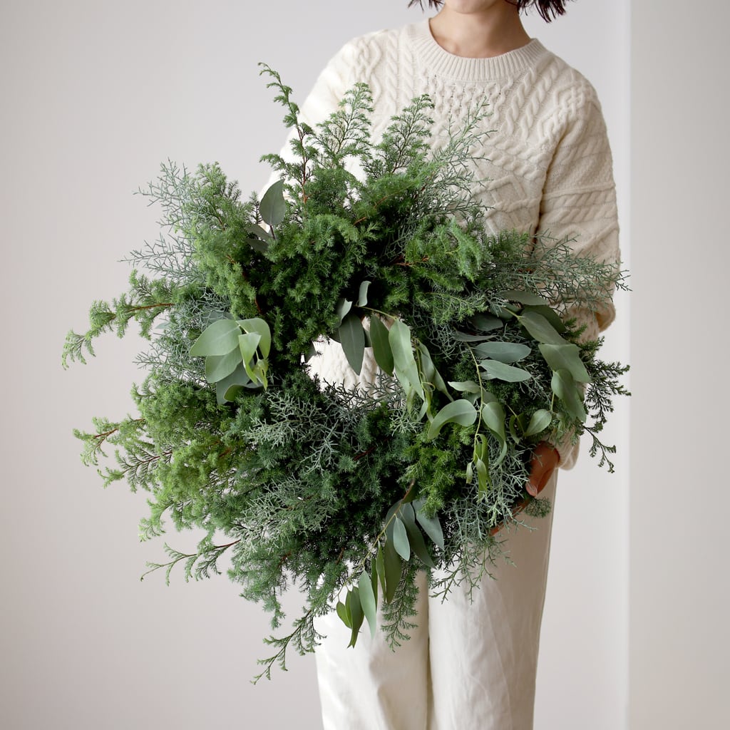 濃淡豊かなグリーンを贅沢に束ねたリース。